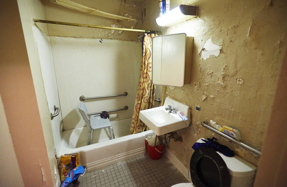 Image credit: Photo: James Keivom/Press Pool. “A bathroom in an apartment in NYCHA’s Andrew Jackson Houses in the Bronx”. In: Katie Honan. “Repair Costs for NYCHA Properties Skyrocket to $31.8 Billion”. The Wall Street Journal website, July 2, 2018, viewed October 2020. (www.wsj.com)