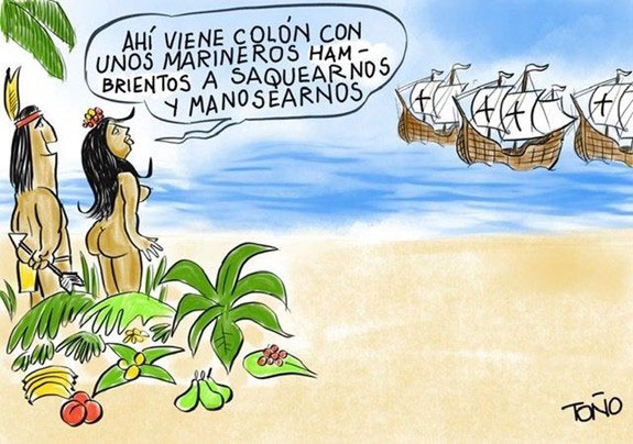 Ahí viene Colón con unos marineros hambrientos a saquearnos y manosearnos (Colón: Kristoffer Columbus) |
